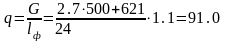 Считая вес верхнего пояса равным весу всего пиломатериала, использовнного для изготовления фермы, получим нагрузку на верхний пояс