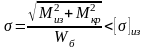 Сложное напряжение от изгиба и кручения определяют по формуле: