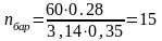 где D = 350 мм = 0,35 м – диаметр барабана;