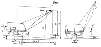 Величины моментов действующих сил зависят от угла наклона площадки, на которой стоит кран, положения стрелы и груза. Совместное действие всех сил, неблагоприятно влияющих на устойчивость крана, приводят к его опрокидыванию. Поэтому краны проектируют так, чтобы при любых условиях как в рабочем, так и в нерабочем состоянии была обеспечена их устойчивость. В расчетах при определении устойчивости крана различают грузовую и собственную устойчивость. Степень устойчивости крана определяется коэффициентом грузовой устойчивости