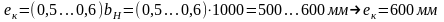 Принимаем eк=(0.5-0.6)*1000=500-600 →600мм