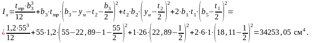 Нижний пояс принимаем сечением b2 x t2 = 260 x 10 мм, верхние горизонтальные ребра – из двух листов сечениями b1 x t1 = 60 x 10 мм.