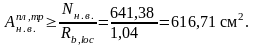 Требуемые площади опорных плит из условия смятия бетона под плитой: