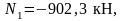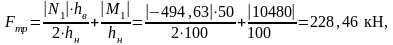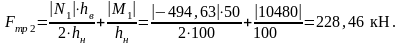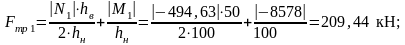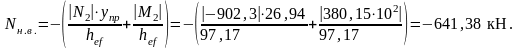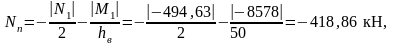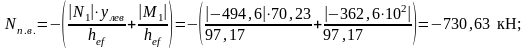 Усилие во внутренней полке сечения верхней части колонны от первой комбинации усилий: