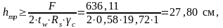 Требуемая высота траверсы из условия прочности стенки подкрановой ветви в месте крепления траверсы: