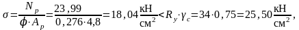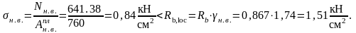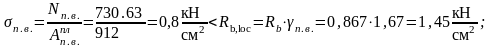 Средние напряжения в бетоне фундамента под опорными плитами: