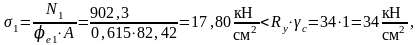Устойчивость колонны в плоскости рамы как единого стержня обеспечена.