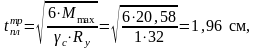 – расчетное сопротивление стали плиты по пределу текучести, по табл. 51 СНиП II-23-81 для стали С345 при толщине листового проката свыше 10 до 20 мм