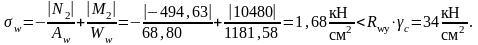 – площадь и момент сопротивления стыкового шва соответственно, равные площади и моменту сопротивления верхней части колонны;