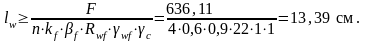 Требуемая длина сварного шва крепления вертикального ребра траверсы к стенке траверсы: