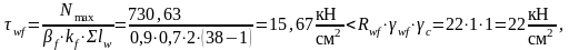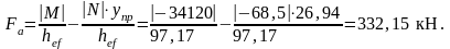 Растягивающее усилие в фундаментных болтах наружной ветви: