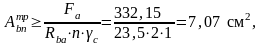 о ГОСТ 24379.1-80* принимаем болты с отгибом из стали 09Г2С диаметром d=36 мм с площадью сечения нетто Abn=7,59 см2. Длина заделки болта в бетон фундамента H=1300 мм. Диаметр отверстия под болт в анкерной плитке принимаем