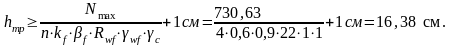 Требуемая толщина анкерной плитки с учетом ослабления отверстиями: