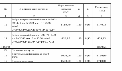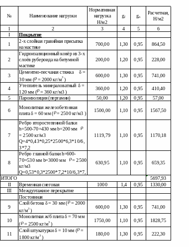 Сбор нагрузок приведен в таблице 7