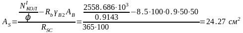 Аs2= М2-2/ (0,9Rs h02) = 468,96 *105/ 0,9 * 280 * 100 * (80 - 3.5) = 24.33 см2