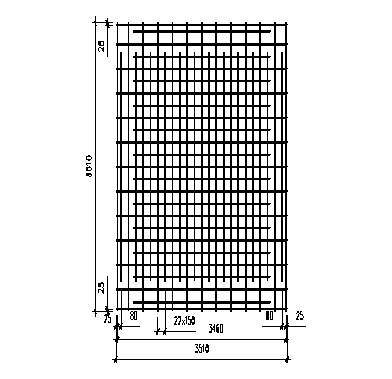 Сварная сетка, укладывается у подошвы фундамента. Выполняется из арматуры классов AII или AIII одинакового шага (100 …200 мм) и диаметра стержней не менее 10 мм и не более 18 мм в обоих направлениях. Минимальная толщина защитного слоя при монолитном фундаменте на бетонной подготовке - 35мм, а при ее отсутствии - 70 мм.