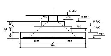 Принимаем окончательную высоту фундамента Нf,3 = 1100 мм