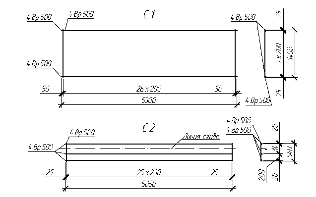 Шаги хомутов у опоры S1 и в пролете S2 должны быть: