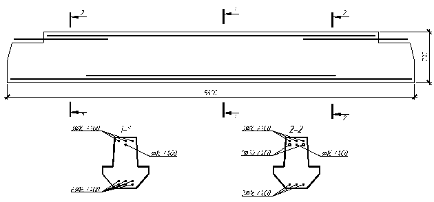 Примем выпуск продольной арматуры 25 мм, расстояние от края продольной арматуры до торца плиты понизу 150 мм, тогда суммарная длина приопорного участка с шагом хомутов S1 и выпуска продольной арматуры с расстоянием от края продольной арматуры до торца равно: