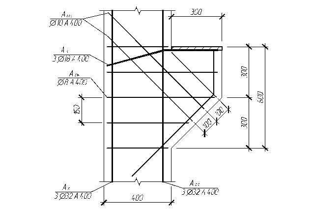 h=600<2,5*257.5=2,5*27=644, консоль армируется только наклонными хомутами по всей высоте.