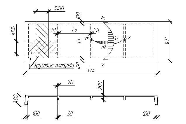 l1=bf’-2*100=1600-2*100=1400 мм;