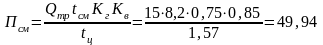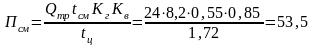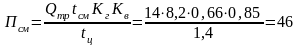 tсм=8,2 ч – продолжительность рабочей смены; Кв=0,85 – коэффициент использования транспорта по времени.