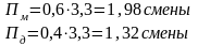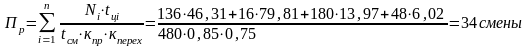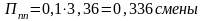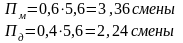 П=34+3,36+2,24+0,336+0 = 40 смен