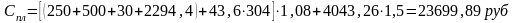 1,08 – коэффициент накладных расходов,
