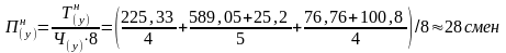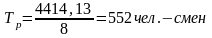 tч =8ч– продолжительность смены в часах,