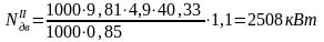Требуемая мощность электродвигателя определяется по максимально возможной подаче насоса Qн=4,9 м3/с, и соответствующему ей напору Нн=40,33 м.
