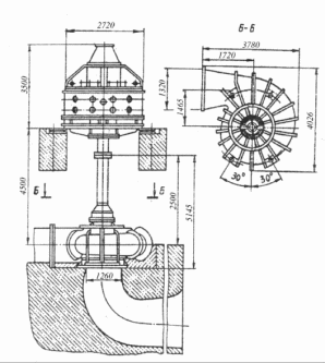 При использовании на насосной станции мощных (Q > 2 м3/с) вертикальных центробежных насосов подвод воды к ним осуществляется с помощью изогнутых всасывающих труб с давлением в них всегда выше атмосферного. Они выполняются в монолитном железобетоне в зданиях блочного типа. Число всасывающих труб равно числу установленных насосных агрегатов.