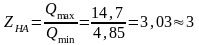 Число рабочих насосных агрегатов определяется как отношение максимального и минимального расходов из графика водопотребления.