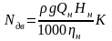 ηн - КПД насоса в долях единицы, снимаемый с характеристики насоса для Qн.