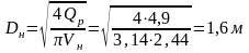 Так как значение Dн больше диаметра напорного патрубка насоса dн =1,32м, переходы выполняют в виде диффузоров длиной