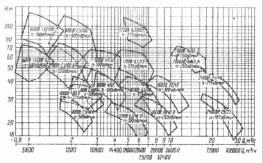 Рисунок 3.1. Сводный график рабочих полей насосов типа В