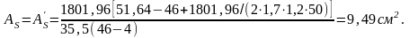 Принимаем 2Ø25 АIII c As=9,82 см2.