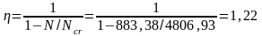 Коэффициент, учитывающий влияние прогиба на значение эксцентриситета продольной силы: