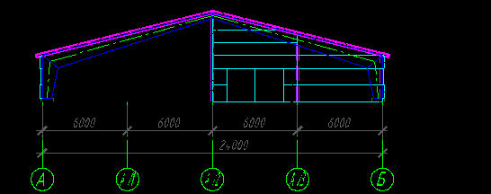 Рисунок 5. Расположение элементов каркаса и покрытия в разрезе