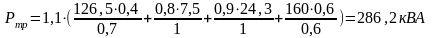 Суммарная мощность 1320=320 кВА >Ртр =286,2 кВА.