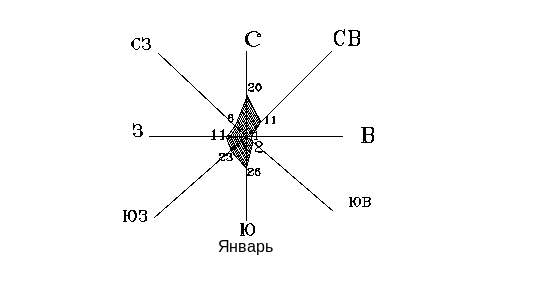 Повторяемость ветра в январе, %