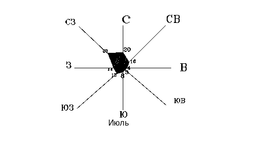 Повторяемость ветра в июле, %