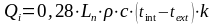 - расход теплоты на прогрев инфильтрирующегося воздуха, поступающего в помещение;