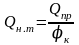 Требуемый номинальный тепловой поток Qн.т, Вт, для выбора типоразмера отопительного прибора находится по формуле: