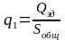 q1 = 38270 / 229,623 = 55,56 Вт/м2