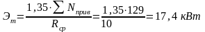 – приведенная мощность (по графику потребности в строительных машинах), кВт;