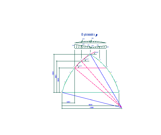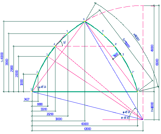 Стрела подъема арки f=(2/3)l=2∙60/3=40 м;