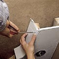 Приклеив кусочки гипсокартона на серпянку, прикрепите шурупами получившуюся боковую стенку к потолочным брускам так, чтобы ее нижний край совпал с нижней плоскостью листа