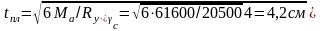 Требуемый момент сопротивления сечения плиты составит W = M/Ryγc = = 31185/20500 = 1,52 см3,