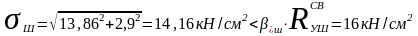 σуш = Мпл/Wш = 1012/73 = 13,86 кН/см2