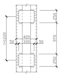 Полученное расстояние должно быть не менее двойной ширины полок швеллеров плюс зазор, необходимый для оправки внутренних поверхностей стержня bтр = 2·115 + 100 = 330 мм < 42 см, следовательно принимаем ширину колонны = 420 мм.